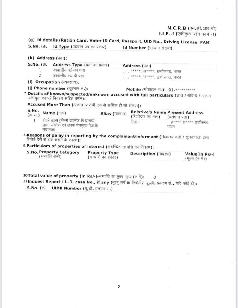 होली क्रॉस विमेन्स कॉलेज अंबिकापुर में विवादित नक्शे पर प्राचार्या शांता जोसफ पर एफआईआर – प्राचार्य के रहते कैसे होगी निष्पक्ष जाँच?