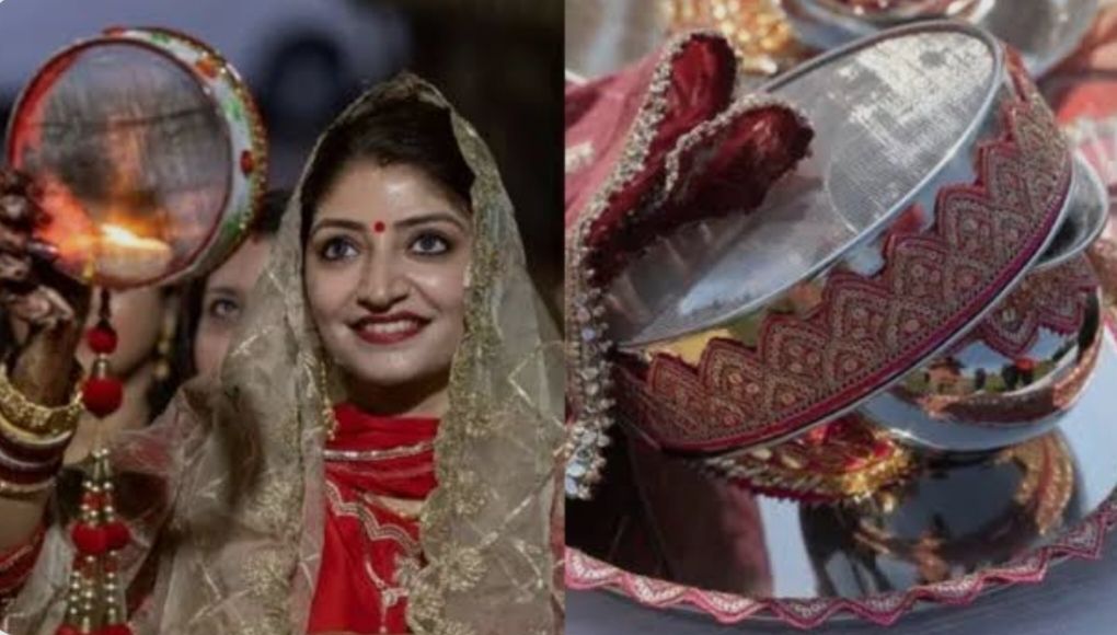 लकड़ी का आसान, देसी घी, पान, सींक, कलश, हल्दी, रोली, मौली, मिठाई, छन्नी, लोटे में भरने के लिए चावल, दान की सामग्री, अक्षत, चंदन, फल, पीली मिट्टी, फूल, मिट्टी या तांबे का करवा और ढक्कन और करवा चौथ व्रत कथा किताब रखना है