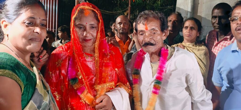बिलासपुर न्यूज / शहर में एक अनोखा और हैरान कर देने वाला मामला सामने आया है, जिसने पूरे इलाके को चर्चा में ला दिया है। सरकंडा क्षेत्र के चिंगराजपारा अटल आवास कॉलोनी में 70 वर्षीय बुजुर्ग दादू राम गंधर्व और 30 वर्षीय युवती ने सात फेरे लेकर एक-दूजे का साथ निभाने का वचन दिया। उम्र के फासले को नजरअंदाज कर दोनों ने अपने प्रेम को विवाह के बंधन में बदल दिया।