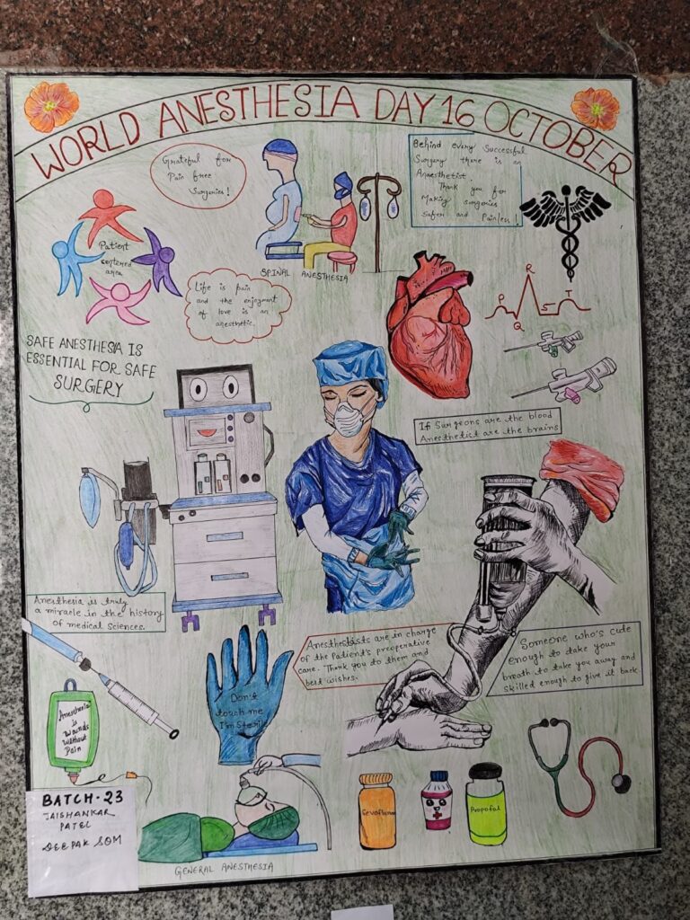 इस अवसर पर पोस्टर प्रतियोगिता, नुक्कड़ नाटक और शैक्षणिक सत्र आयोजित किए गए, जिनमें ऑपरेशन से पहले मरीजों की सावधानियों, सहमति पत्र की प्रक्रिया और निश्चेतना के महत्व पर जानकारी दी गई। पोस्टर प्रतियोगिता का विषय था — “आपात स्थिति में निश्चेतना विशेषज्ञ का योगदान”, जिसमें एमबीबीएस विद्यार्थियों ने उत्साहपूर्वक भाग लिया।