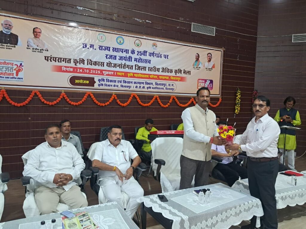 कार्यक्रम के मुख्य अतिथि श्री राजेश सुर्यवशीं, अध्यक्ष जिला पंचायत बिलासपुर द्वारा बताया गया कि 01 नवम्बर 2000 को छ.ग. राज्य की स्थापना से लेकर अब तक किसान हितैसी राज्य सरकार द्वारा किसानों के विकास के लिए अनेक योजनाएं संचालित की जा रही है। इन 25 वर्षों में जिले के किसानों द्वारा कृषि क्षेत्रों में अनेक नवीन तकनीकों और वैज्ञानिक सोंच को अपनाया है, जिसे आज रजत जयंती महोत्सव कार्यक्रम के माध्यम से प्रदर्शित किया जा रहा है। साथ ही इस कार्यक्रम में कृषि, उद्याानिकी, पशुपालन, मतस्य पालन, कृषि महाविद्यालय, कृषि विज्ञान केन्द्र, किसान बीज उत्पादक संस्था रिस्दा एवं महिला स्व सहायता समूहों द्वारा निर्मित कृषि तथा जैविक उत्पादों का प्रदर्शन तथा योजनाओं का प्रचार प्र्रसार किसानों के मध्य किया जा रहा है। कार्यक्रम की अध्यक्षता श्रीमति अनुसुईया जागेन्द्र कश्यप, सभापति कृषि स्थाई समिति द्वारा किया गया।