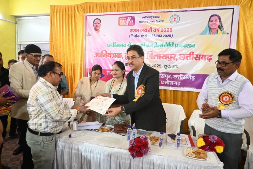 बिलासपुर, 12 दिसम्बर 2025/छत्तीसगढ़ रजत जंयती वर्ष 2025 के अवसर पर विशेष उपलब्धियों को प्रदर्शित करते हुये विशेष सप्ताह का आयोजन किया जा रहा है। इसी क्रम में ब्रेल लिपि के प्रकाशन एवं उपलब्धियों पर आधारित विशेष कार्यक्रम का आयोजन उपनियंत्रक ब्रेल प्रेस कार्यालय में किया गया। कार्यक्रम की शुरूआत दृष्टिबाधित बालिकाओं द्वारा राज्यगीत एवं सरस्वती वंदना गीत की प्रस्तुति से की गई।