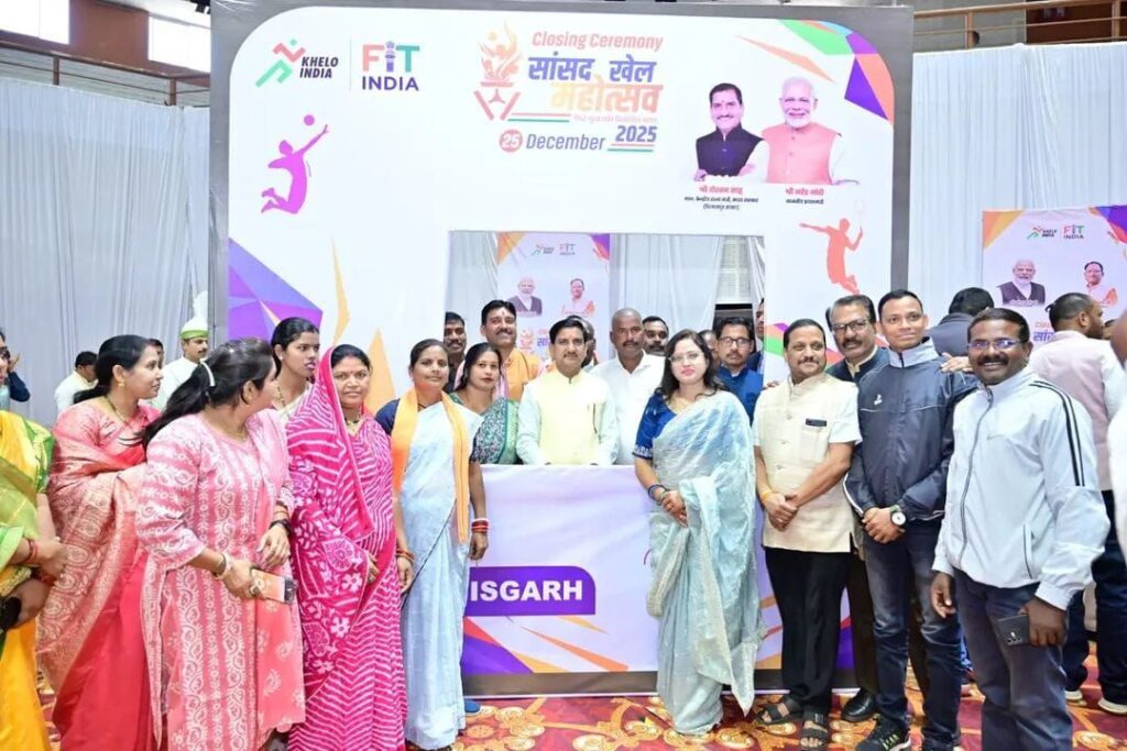 बिलासपुर,25 दिसंबर/ प्रधानमंत्री श्री नरेंद्र मोदी ने सांसद खेल महोत्सव के समापन अवसर पर देशवासियों को संबोधित किया। बहतराई स्टेडियम में आयोजित केंद्रीय मंत्री श्री तोखन साहू के मुख्य आतिथ्य में समापन समारोह का आयोजन हुआ। प्रधानमंत्री के उद्बोधन को इस अवसर पर वर्चुअली सुना गया। प्रधानमंत्री ने खेलों को राष्ट्र निर्माण का सशक्त माध्यम बताया और युवाओं से खेलों को जीवन का अभिन्न हिस्सा बनाने का आह्वान किया। इस अवसर पर विधायक श्री सुशांत शुक्ला, जिला पंचायत अध्यक्ष श्री राजेश सूर्यवंशी, महापौर श्रीमती पूजा विधानी, कलेक्टर श्री संजय अग्रवाल,निगम कमिश्नर श्री प्रकाश सर्वे, सीईओ जिला पंचायत संदीप अग्रवाल मौजूद रहे।