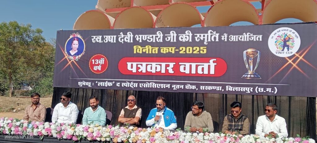 बिलासपुर :- क्रिकेट प्रेमियों के लिए एक बार फिर बड़ा उत्सव शुरू होने जा रहा है। स्वर्गीय उषादेवी भंडारी जी की स्मृति में आयोजित विनीत कप रात्रिकालीन लाइट वेट बॉल अखिल भारतीय क्रिकेट टूर्नामेंट का शुभारंभ आज 28 दिसंबर 2025 से स्थानीय खेल परिसर,एसईसीएल मुख्यालय के सामने किया जा रहा है। यह प्रतिष्ठित टूर्नामेंट इस वर्ष अपने 13वें सफल आयोजन में प्रवेश कर चुका है और हर वर्ष की तरह इस बार भी देशभर के क्रिकेट खिलाड़ियों व दर्शकों में खास उत्साह देखने को मिल रहा है।