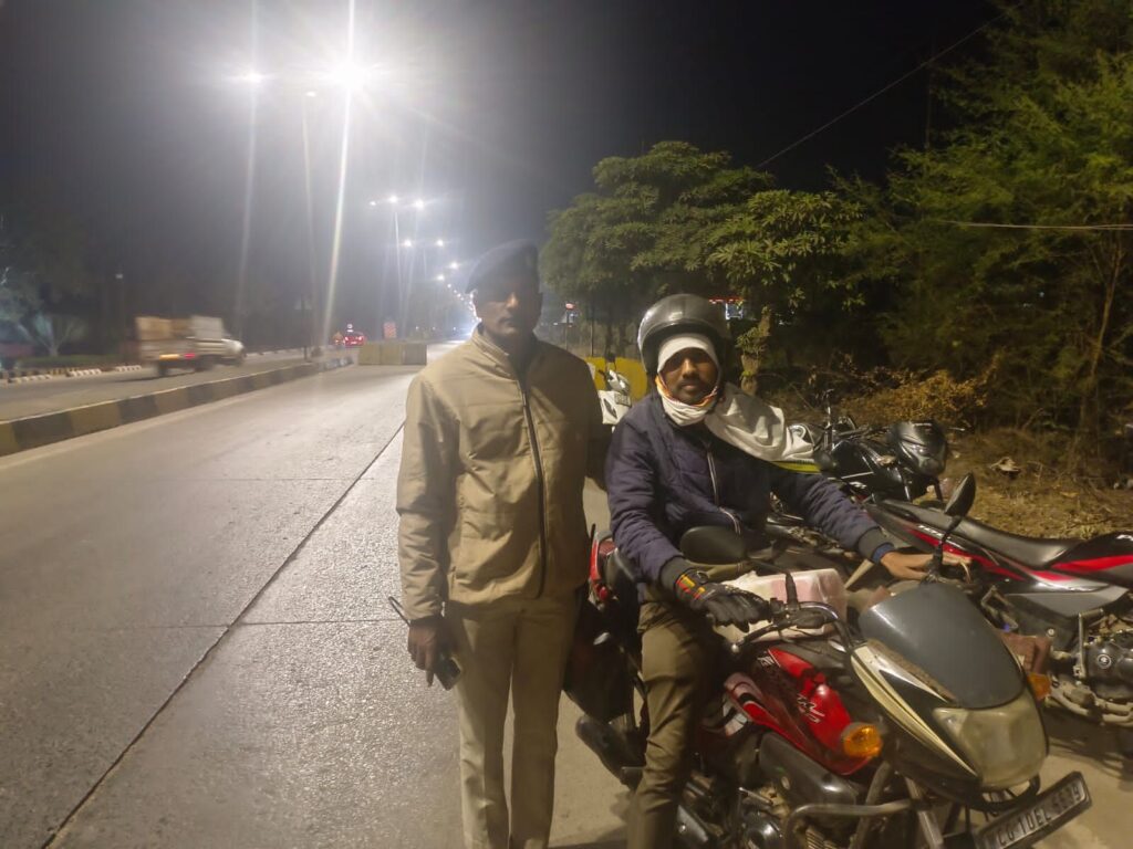 बिना हेलमेट: हेलमेट न पहनने वाले दुपहिया वाहन चालकों को रोककर उन्हें भविष्य के लिए कड़ी चेतावनी और हिदायत दी गई।