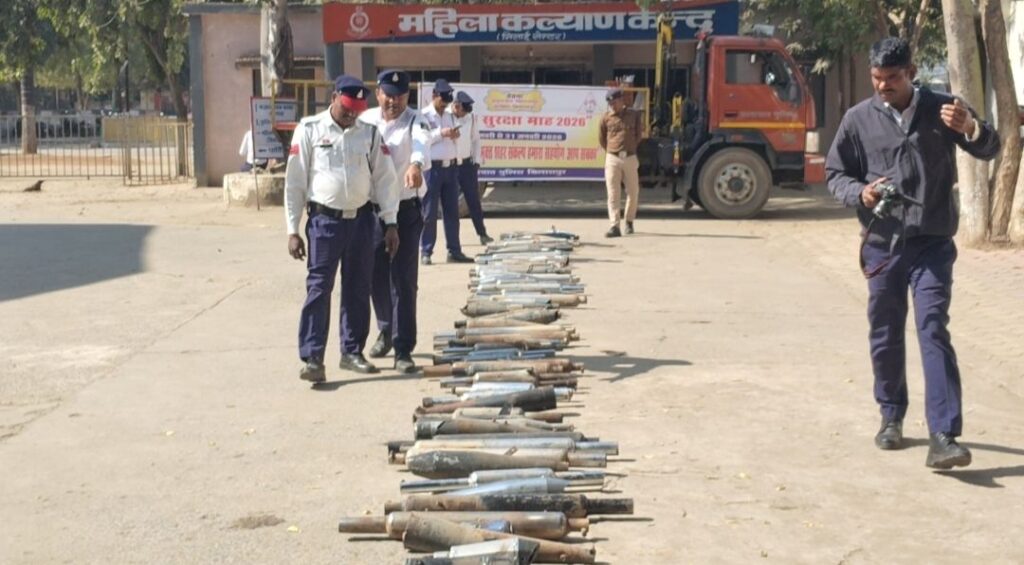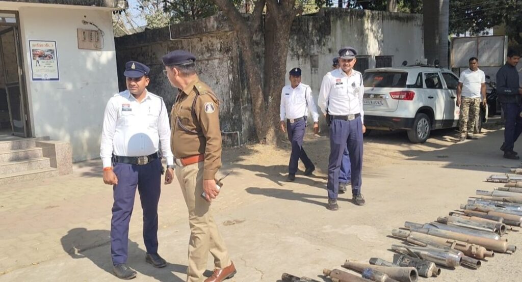 बिलासपुर:शहर की शांति व्यवस्था बनाए रखने और ध्वनि प्रदूषण पर प्रभावी अंकुश लगाने के उद्देश्य से, पुलिस अधीक्षक बिलासपुर के निर्देशानुसार आज यातायात पुलिस द्वारा एक बड़ा कदम उठाया गया। आज दोपहर 1:00 बजे चेतना भवन प्रांगण में जब्त किए गए 107 नग अवैध मॉडिफाइड साइलेंसरों का सार्वजनिक रूप से नष्टीकरण किया गया।