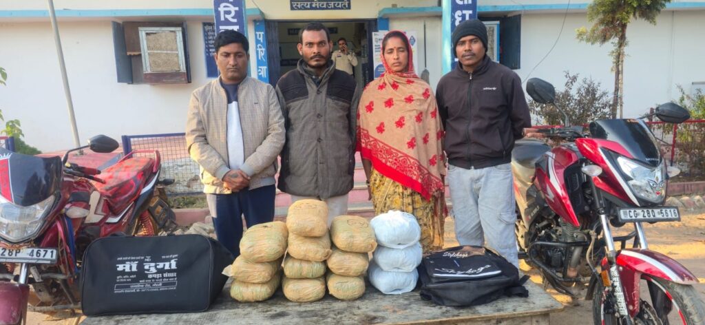 बिलासपुर | वरिष्ठ पुलिस अधीक्षक श्री रजनेश सिंह (भापुसे) द्वारा चलाए जा रहे ‘प्रहार अभियान’ के तहत अवैध नशे के विरुद्ध बेलगहना पुलिस को बड़ी सफलता मिली है। पुलिस ने घेराबंदी कर उड़ीसा से गांजा लाकर तस्करी करने वाले गिरोह का भंडाफोड़ करते हुए एक महिला सहित चार आरोपियों को गिरफ्तार किया है।
