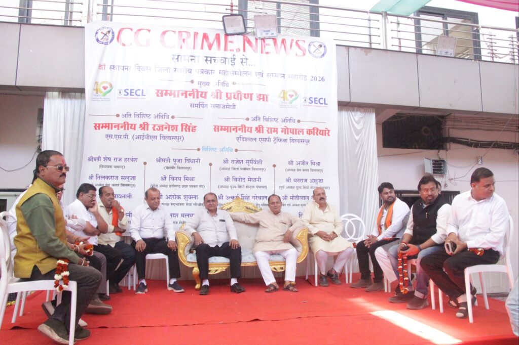 बिलासपुर न्यायधानी बिलासपुर के पूज्य सिंधी पंचायत भवन में रविवार, 8 फरवरी 2026 को ‘सीजी क्राइम न्यूज़’ का पांचवां स्थापना दिवस समारोह अत्यंत भव्य, गरिमामयी और उत्साहपूर्ण वातावरण में संपन्न हुआ। इस अवसर पर पत्रकारिता के प्रति समर्पण, समाजसेवा का संकल्प और सांस्कृतिक विविधताओं का एक अद्भुत समन्वय देखने को मिला। कार्यक्रम में शहर के वरिष्ठ पत्रकारों, प्रशासनिक अधिकारियों और गणमान्य नागरिकों ने अपनी उपस्थिति से आयोजन की शोभा बढ़ाई।
