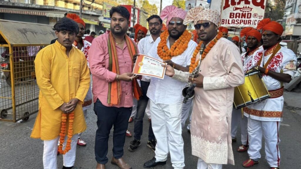 बिलासपुर: न्यायधानी बिलासपुर में भगवान शिव की भव्य शोभायात्रा एवं बारात बड़े ही हर्षोल्लास और श्रद्धा के साथ निकाली गई। इस पावन अवसर पर शहर का वातावरण शिवमय हो गया। कार्यक्रम की भव्यता में चार चाँद लगाने वाली राज बैंड पार्टी का अखिल भारतीय हिंदू परिषद द्वारा विशेष रूप से स्वागत एवं अभिनंदन किया गया।
