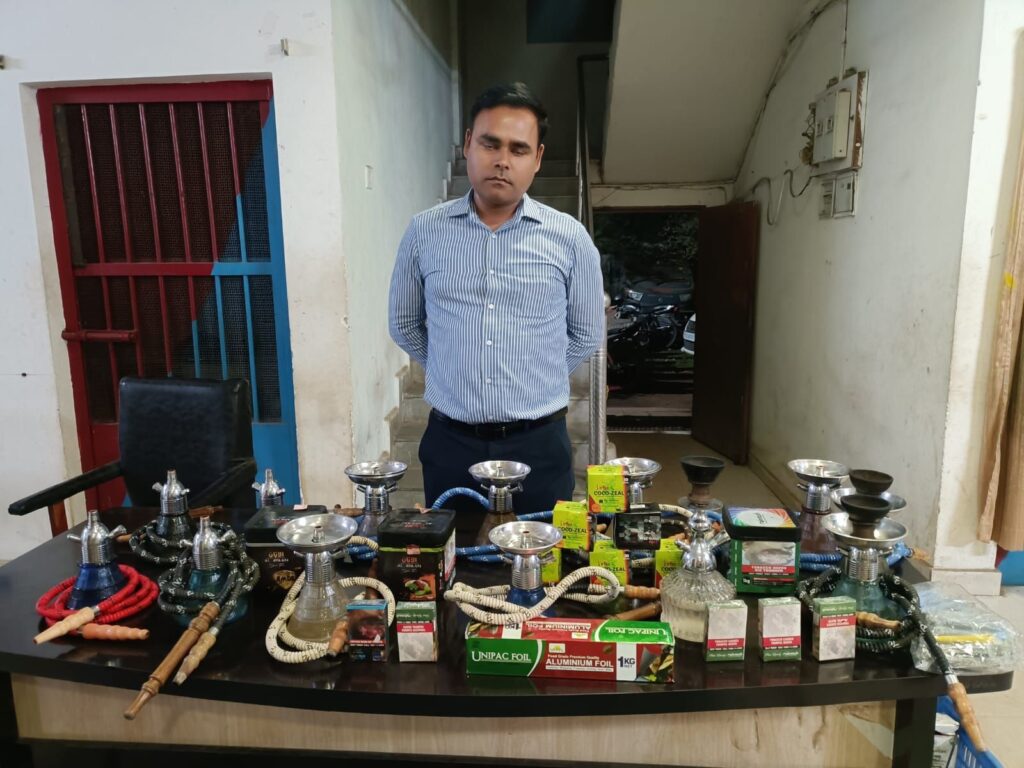 पुलिस ने मौके से भारी मात्रा में हुक्का उपकरण और सामग्री जप्त की है: