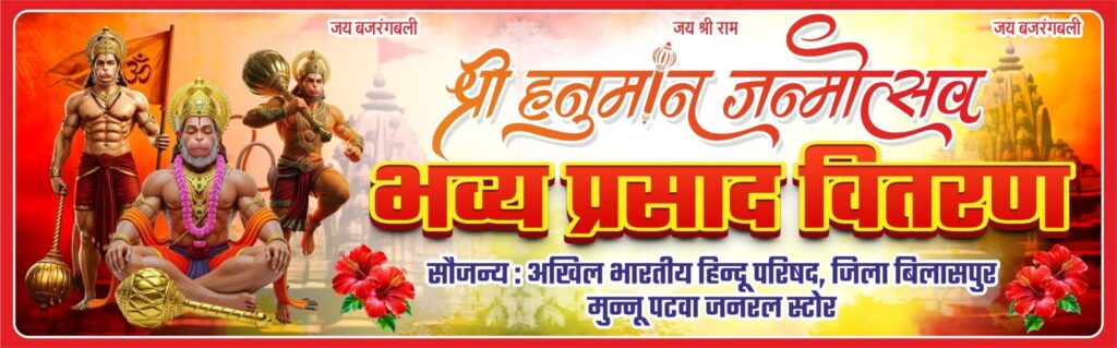 बिलासपुर/चकरभाठा: चकरभाठा क्षेत्र में भक्ति और सेवा का अनुपम संगम देखने को मिला, जहाँ अखिल भारतीय हिंदू परिषद एवं मुन्नु पटवा जनरल स्टोर के संयुक्त सौजन्य से एक भव्य प्रसाद वितरण कार्यक्रम का आयोजन किया गया। धार्मिक उत्साह के साथ आयोजित इस कार्यक्रम में बड़ी संख्या में श्रद्धालु उमड़े और बजरंगबली के जयकारों से पूरा क्षेत्र गुंजायमान हो उठा।